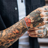 Protégez votre investissement - Sur The Steel Shop , nous utilisons l'acier inoxydable pour une raison bien précise : c'est un métal de très haute qualité qui ne ternit pas et ne se corrode pas. Il est essentiel de savoir comment entretenir vos bijoux en acier pour préserver leur beauté et faire en sorte que chaque accessoire dure toute une vie.