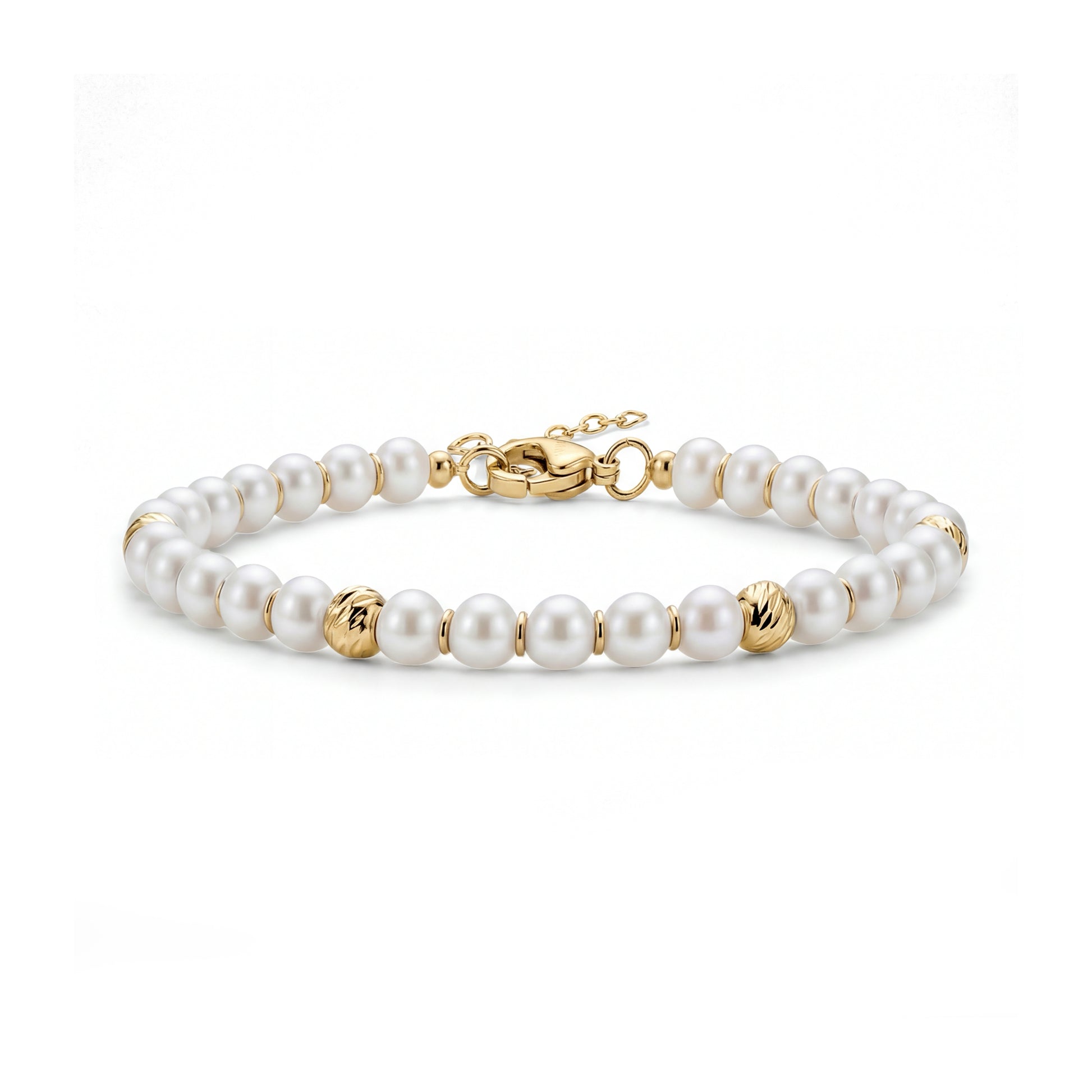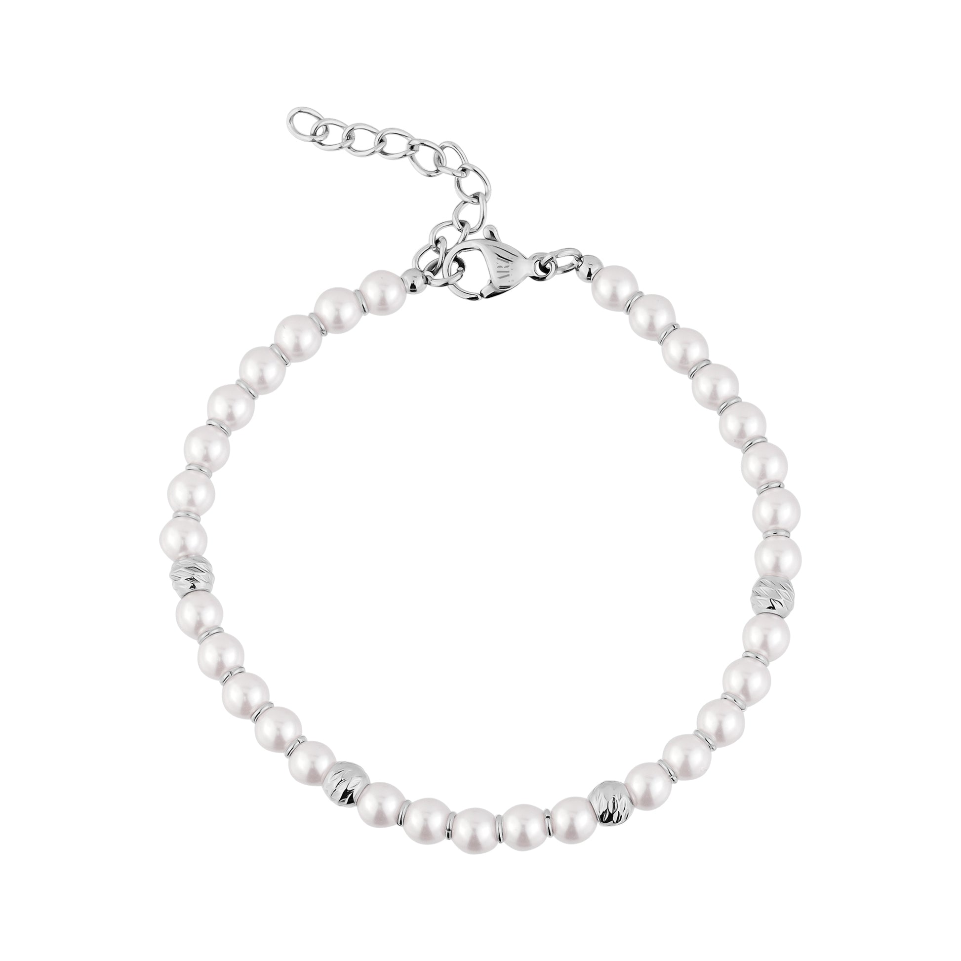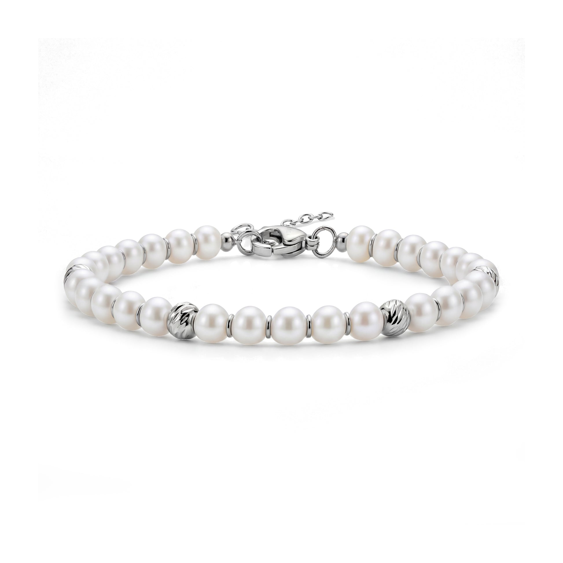 Le bracelet Modern Pearl Bead associe des perles de nacre lisses de 4 mm (0,16 pouce) à des perles en acier inoxydable poli pour créer une version moderne et rafraîchissante d'un style classique. Sa longueur de 15,8 cm avec une extension de 3,2 cm vous offre un ajustement confortable et modulable, idéal pour un usage quotidien ou pour être associé à vos bracelets préférés. Épuré, léger et raffiné, il ajoute une touche douce et contemporaine à tous vos looks.